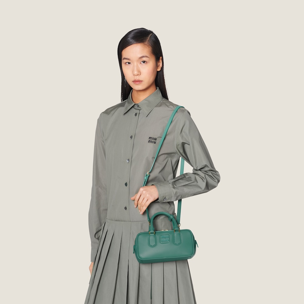This Arcadie leather bag expresses a notion of fashion as a means of translating a reaction to current reality into material form. The light padding gives the bag a voluminous look and a cosmopolitan style. The lettering logo, which echoes the finishes of the metal hardware, crosses the boundaries between function and decoration and helps to define the distinctive and iconic aesthetic of the top-handle bag.