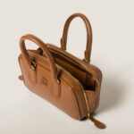 This Arcadie leather mini-bag expresses a concept of fashion as a means for translating a reaction to current reality into a particular shape. The light padding gives a voluminous appearance and cosmopolitan style to the accessory. The lettering logo, in the same color as the hardware, crosses the boundaries between function and decoration and helps define the distinctive and iconic aesthetic of the top-handle bag.