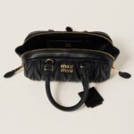Fine matelassé workmanship reinterprets the classic silhouette of the top-handle bag, giving it a three-dimensional, textured, and extremely sophisticated effect. The lettering logo on the front, which echoes the finish of the metal hardware, stands out against the refined artisan workmanship with an iconic and immediately recognizable touch. The dynamic and elegant lines of this mini format and the detachable, adjustable shoulder strap contribute to the versatile, functional, and modern design of the bag.