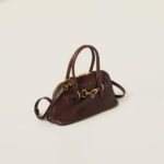 The Aventure top-handle bag, recovered from the Miu Miu archives, has been reinterpreted in terms of a lighter structure and attitude, creating a classic style with timeless charm. The embossed lettering logo completes the design with an iconic note.