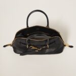 The Aventure top-handle bag, recovered from the Miu Miu archives, has been reinterpreted in terms of a lighter structure and attitude, creating a classic style with timeless charm. The embossed lettering logo completes the design with an iconic note.