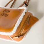 Shearling trims stand out on the Beau bag’s soft, smooth leather design, while the embossed lettering logo completes the design with an iconic note.