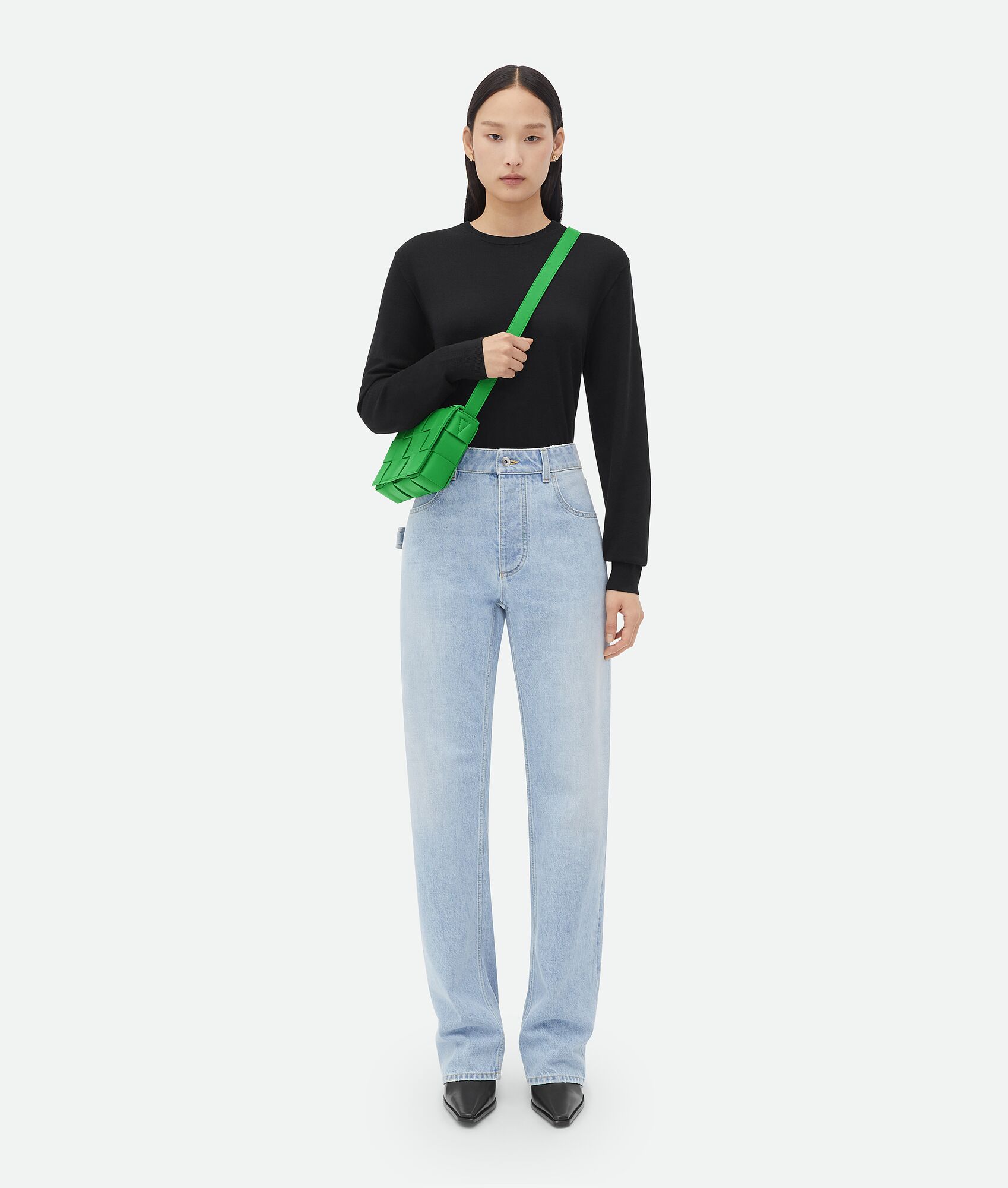 Cross-body bag made from soft lambskin leather using Intreccio craftsmanship.