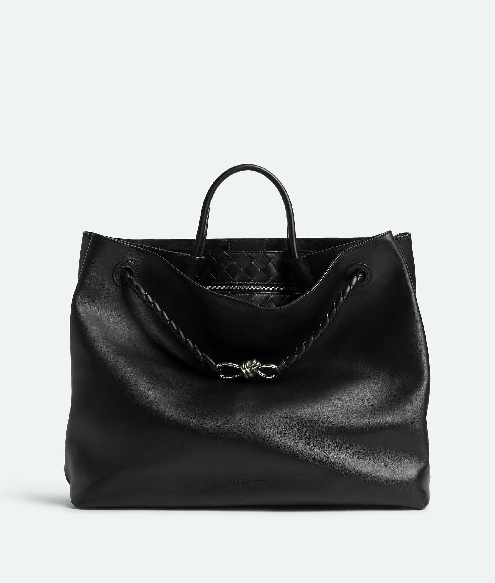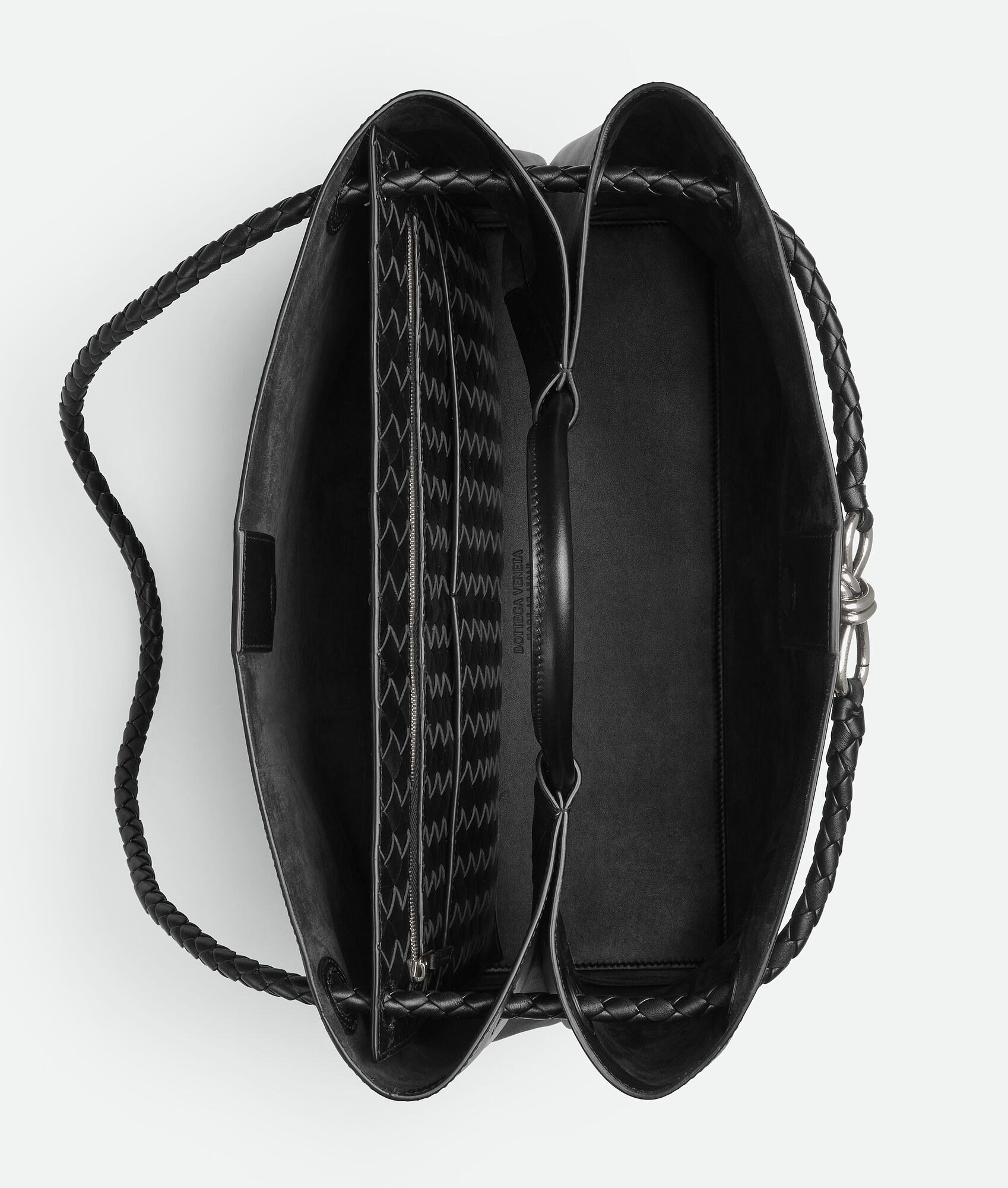 Top handle bag in silky calf leather with signature knot detail and sliding cross-body