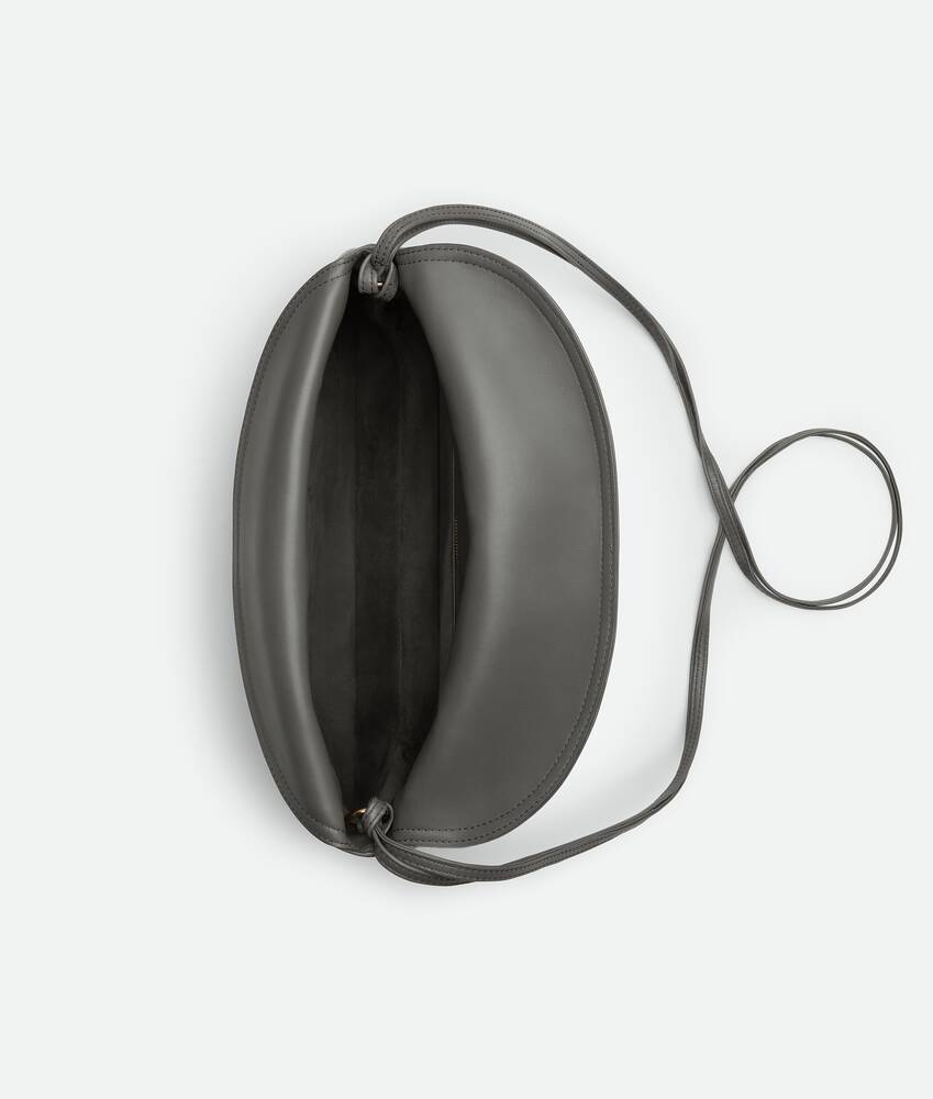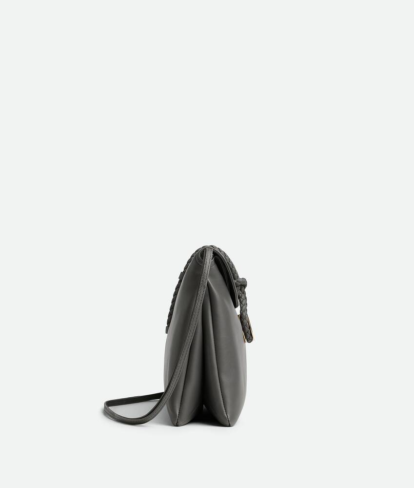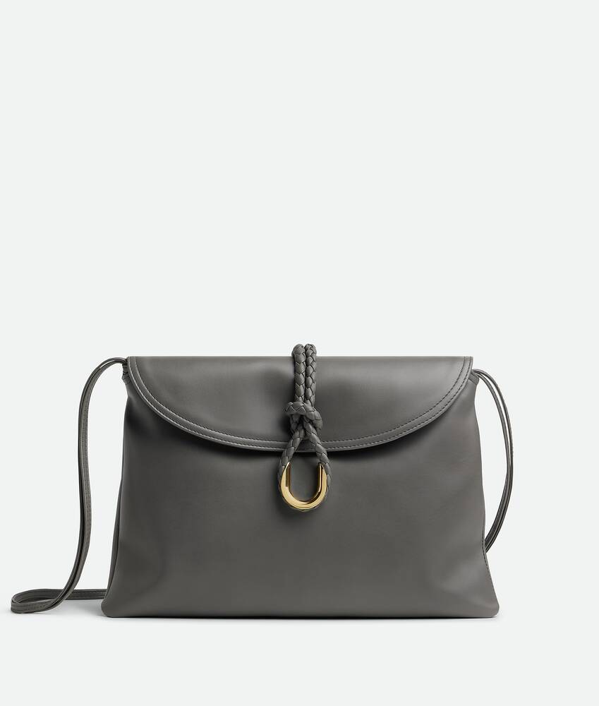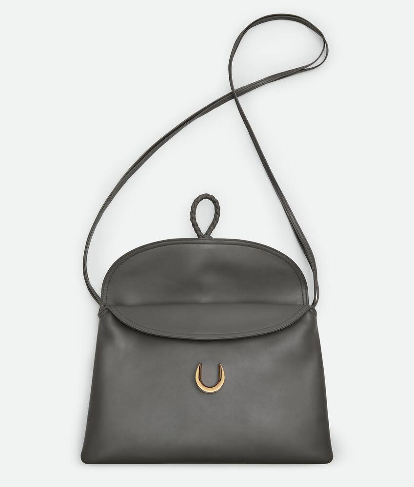 • Cross-body bag in smooth calfskin leather with double flap and fastening system consisting of metal elements and coaxial cord