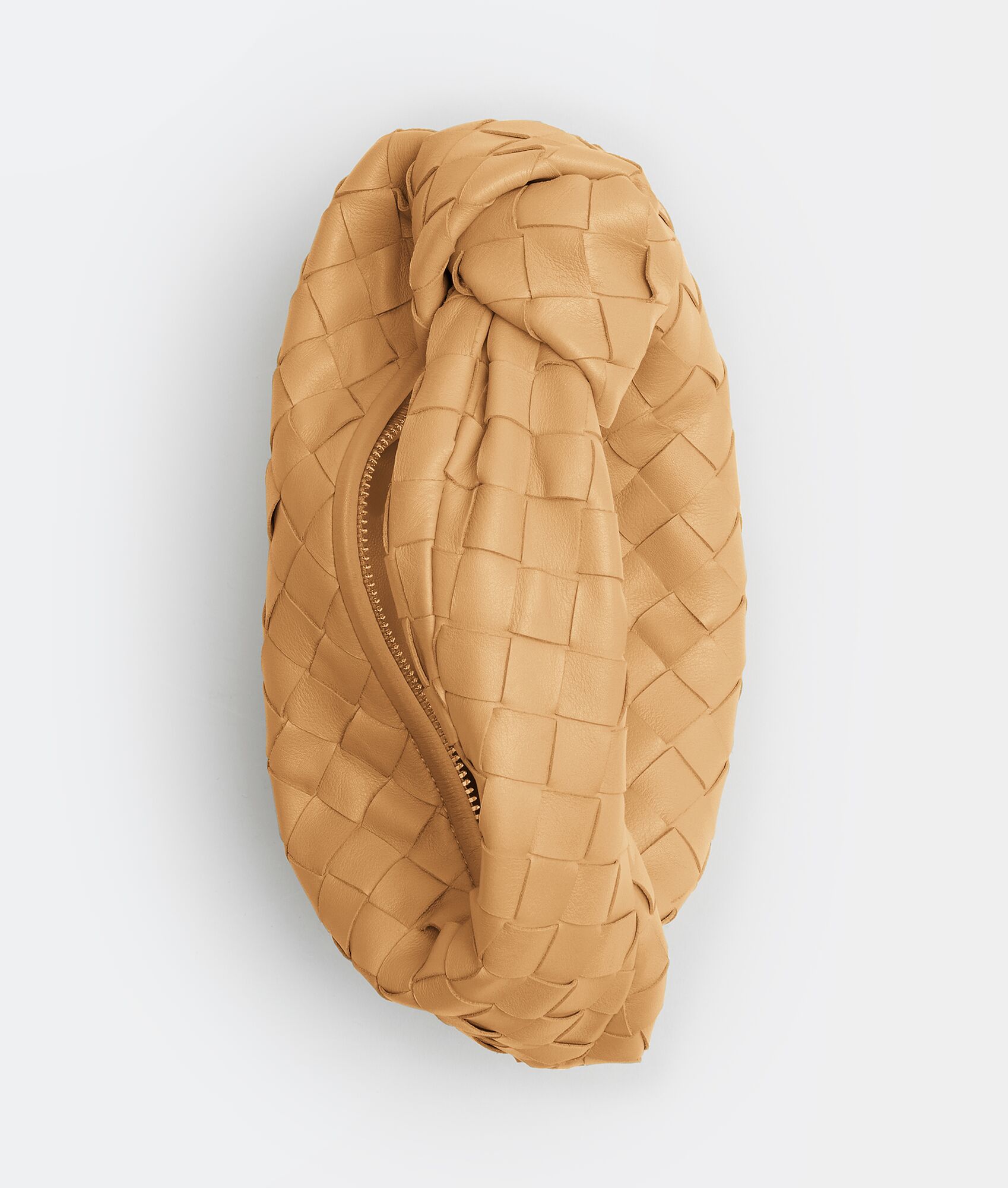 Top handle bag with rounded shape and signature knot in supple Intrecciato leather.