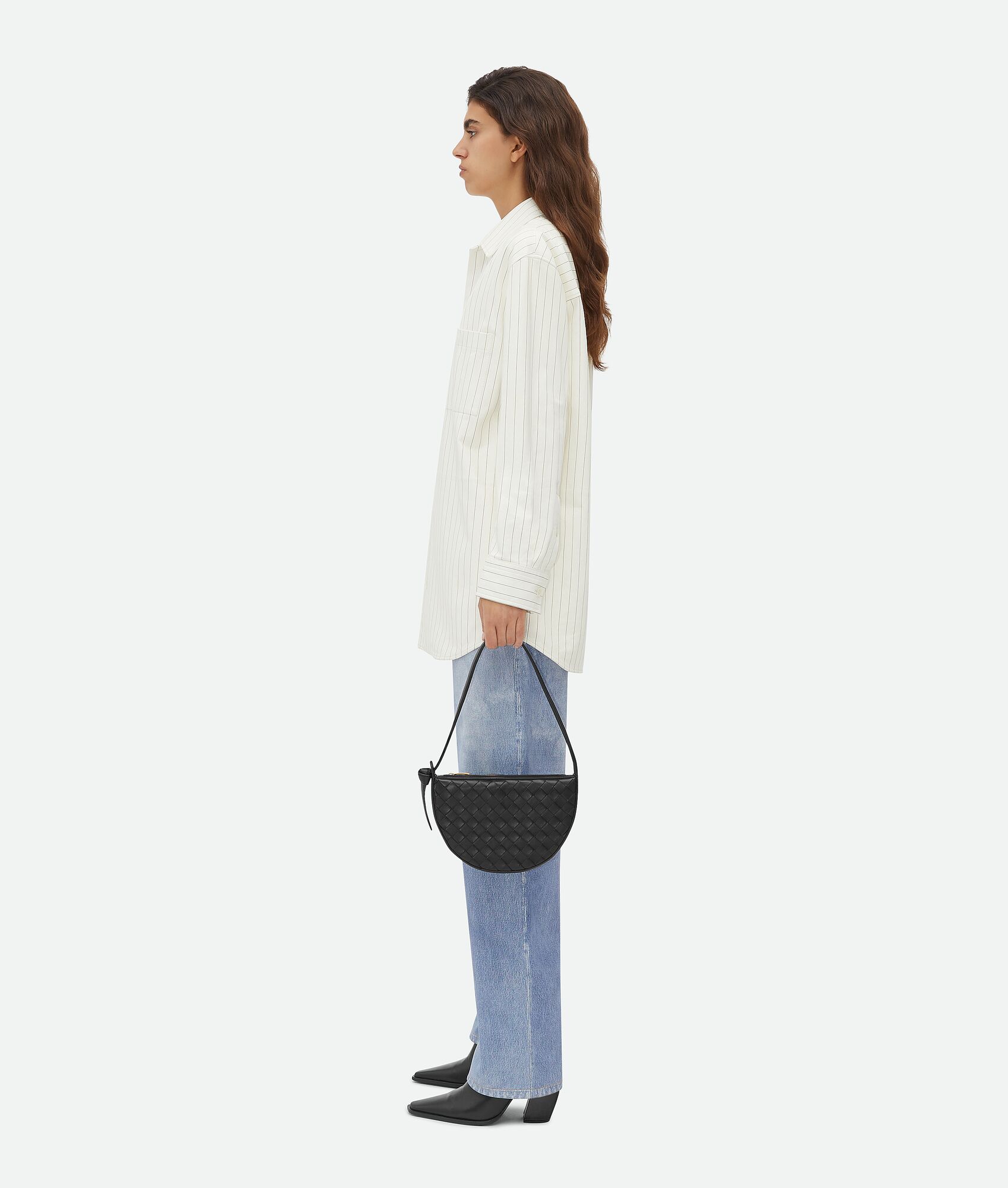 Shoulder bag realised with Intrecciato craftsmanship in soft lambskin leather with