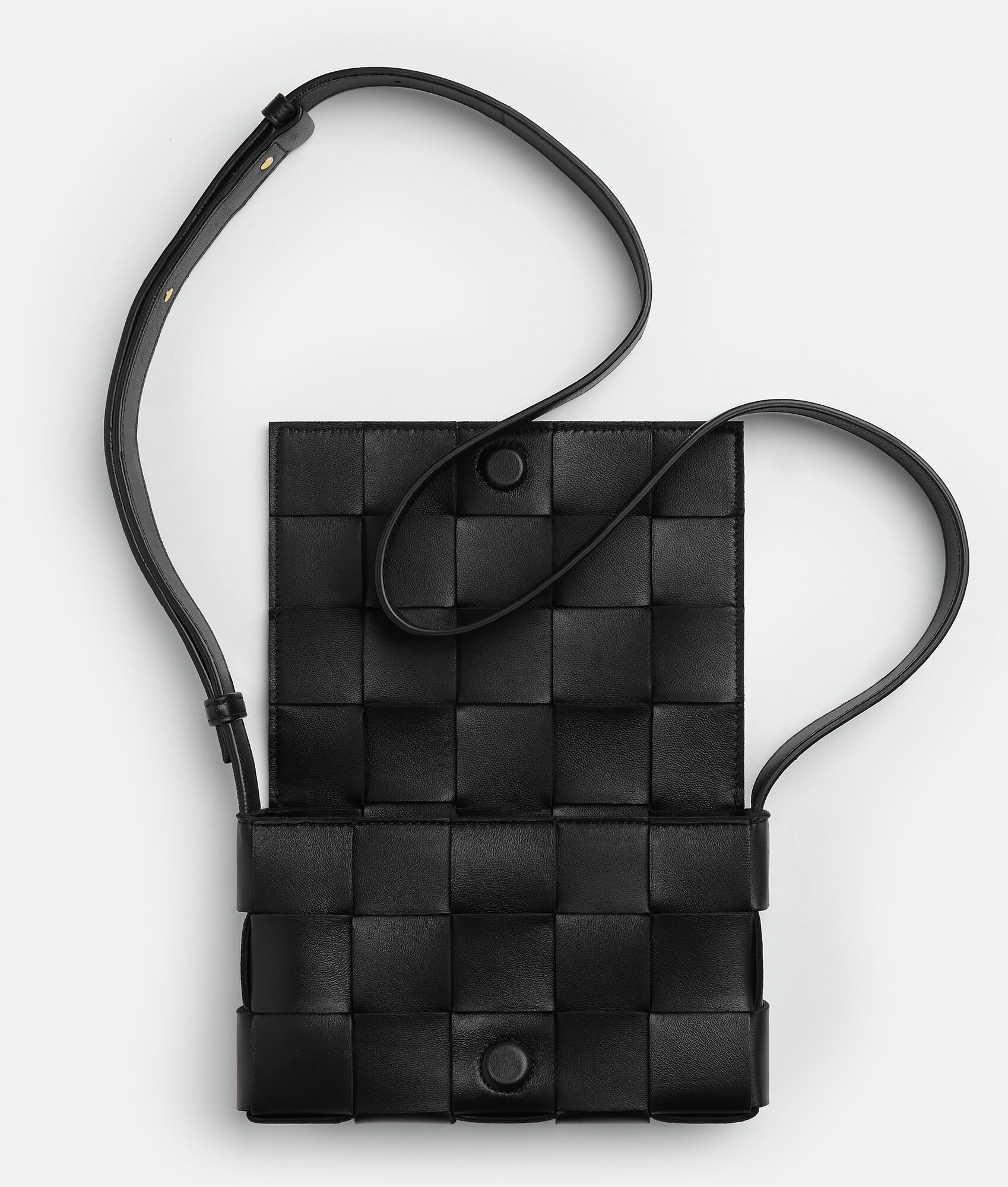 Cross-body bag realised with Intreccio craftsmanship in soft lambskin leather.