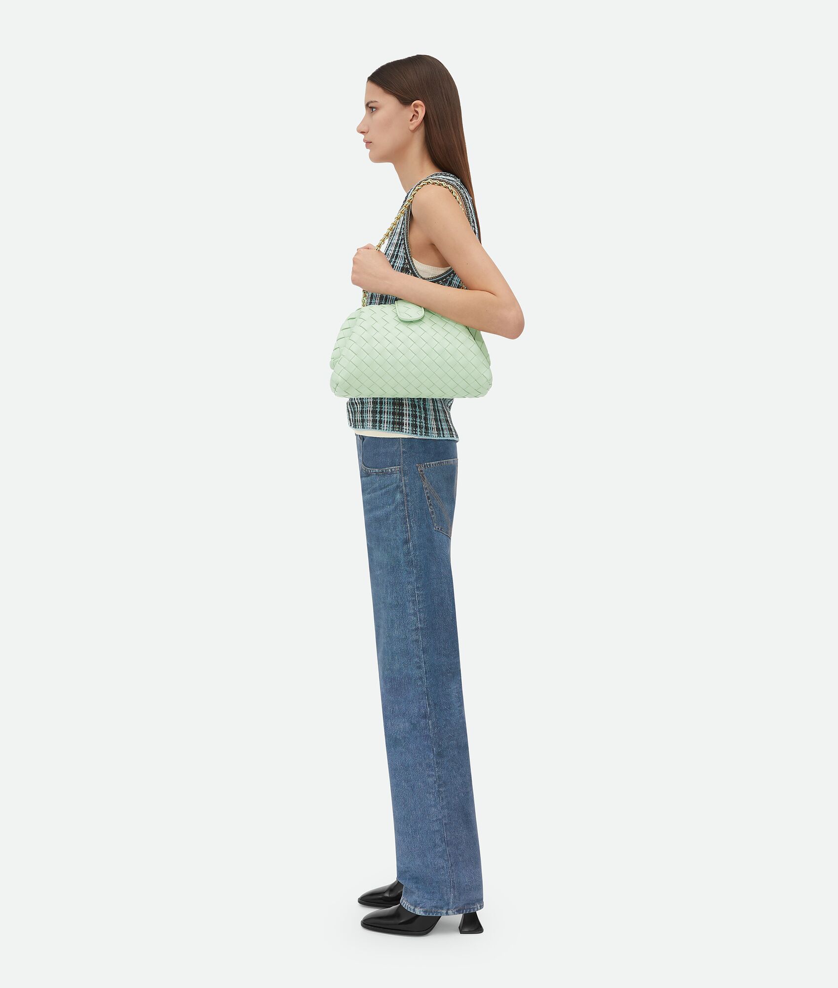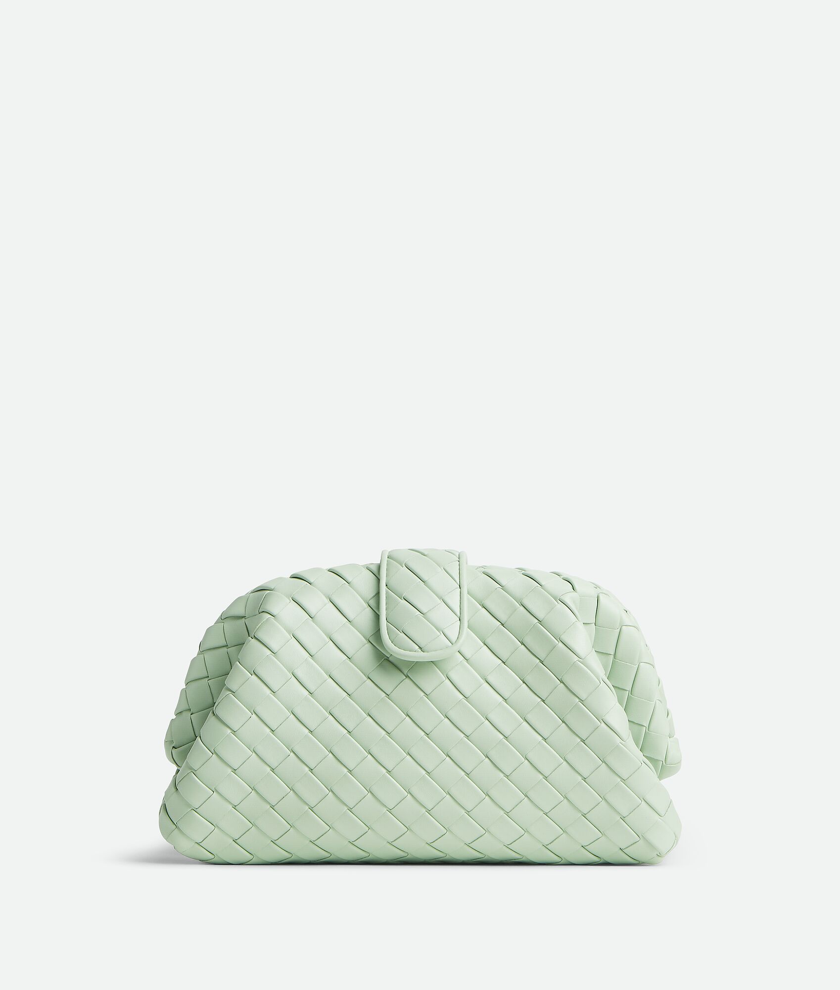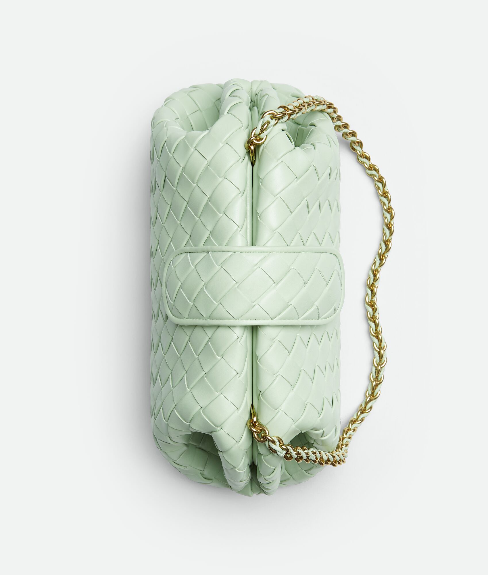 • Padded Intrecciato leather teen clutch with leather braided metal chain