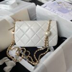 Chanel AS4861 Small Flap Bag Pearl Lambskin Faux Pearl & Gold Metal White
