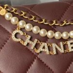Chanel AS4986 Mini Flap bag Shiny Lambskin Imitation Pearls & Gold-Tone Metal Wine Red
