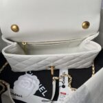 Chanel AS4997 Flap Bag Top Handle Shiny Lambskin Imitation Pearl & Gold Metal White