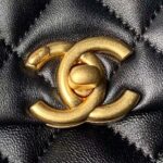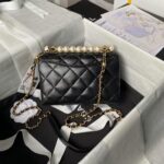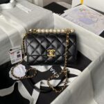 Chanel AS5001 Mini Flap Bag Top Handle Shiny Lambskin Imitation Pearl & Gold Metal Black