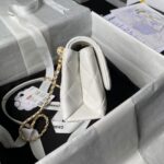 Chanel AS5001 Mini Flap Bag Top Handle Shiny Lambskin Imitation Pearl & Gold Metal White