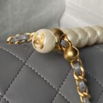 Chanel AS5001 Mini Flap Bag Top Handle Shiny Lambskin Imitation Pearl & Gold Metallic Grey