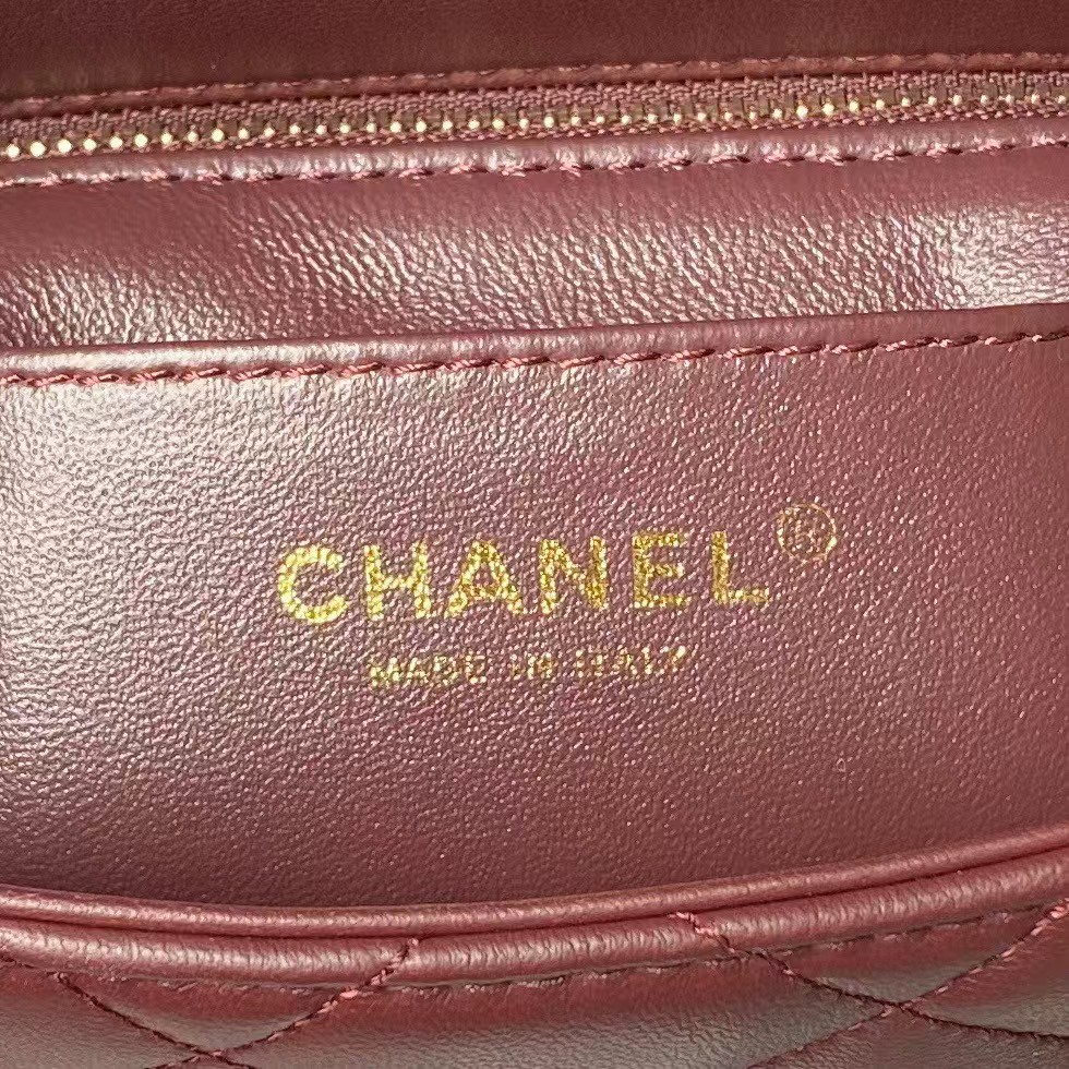 Chanel AS5011 Flap bag Shiny Lambskin Imitation Pearls & Gold-Tone Metal Wine Red