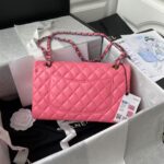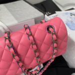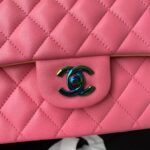 This medium classic double flap bag is crafted in dark pink lambskin leather with ombre metal hardware, front flap with signature CC turnlock closure, half-moon back pocket, adjustable interwoven ombre chain and dark pink leather shoulder strap.