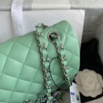 This medium classic double flap bag is crafted in green leather with silver hardware, featuring the signature CC turnlock closure on the front flap, half-moon back pocket, adjustable interwoven silver chain and green leather shoulder strap.