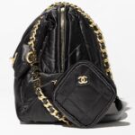 This travel bag is crafted from black velvet with antique gold hardware and features signature diamond quilting, signature CC turnlock closure, and zip fastening.