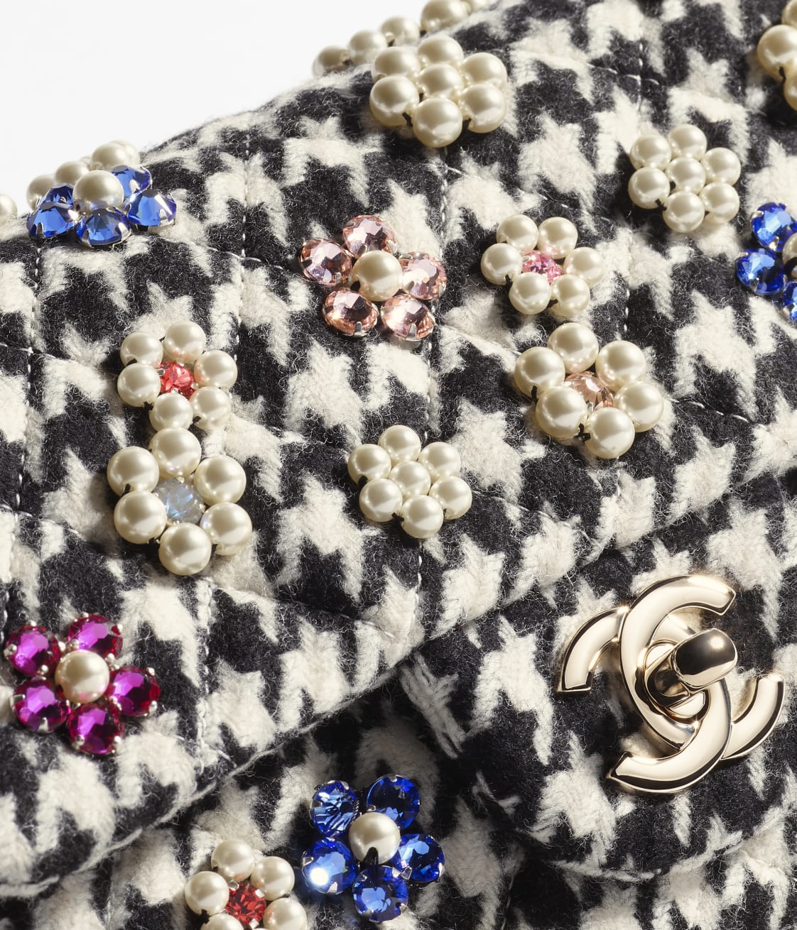 Embroidered Tweed, Imitation Pearls, Strass & Gold-Tone MetalBlack & White