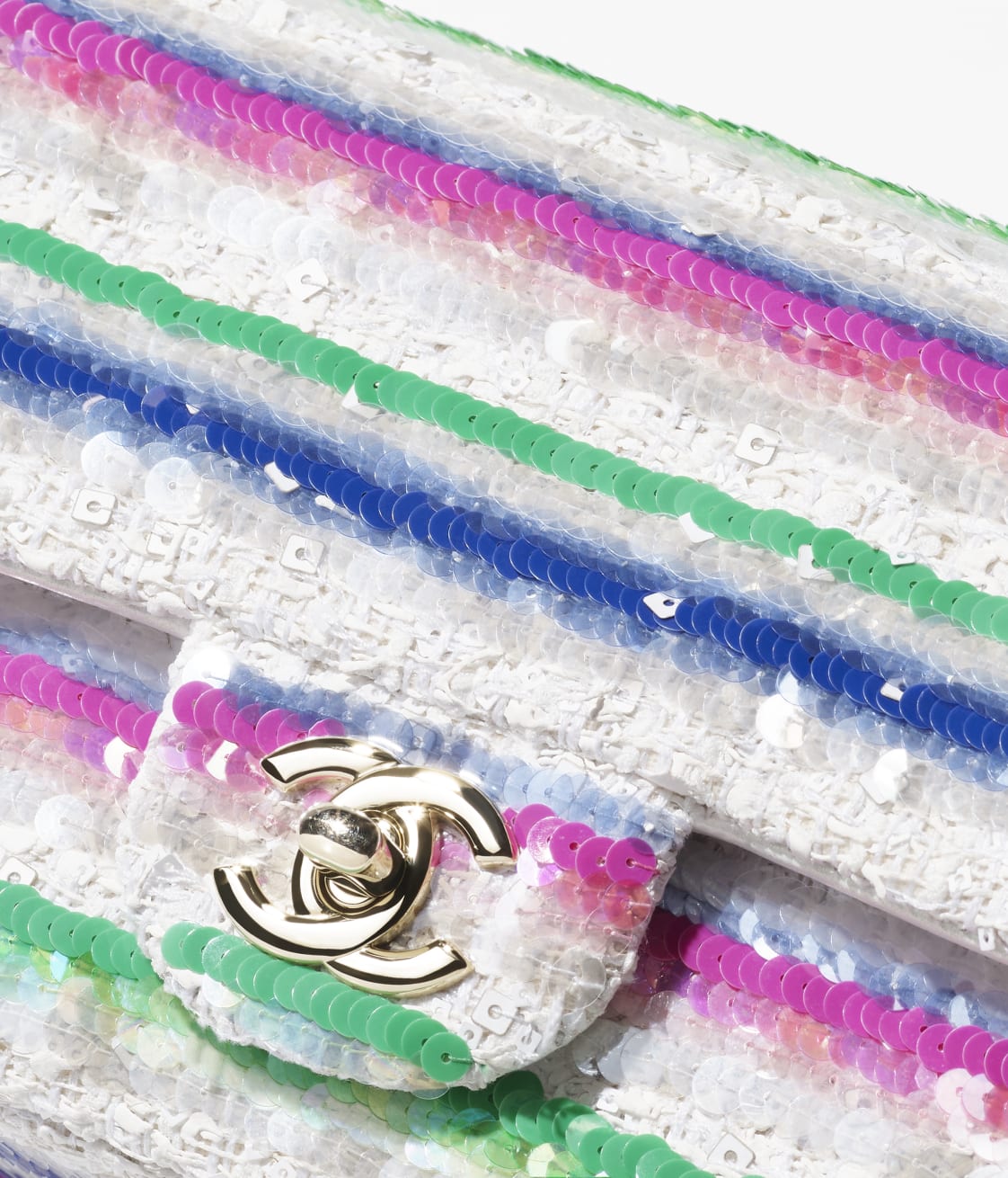 Embroidered Tweed, Sequins & Gold-Tone MetalWhite, Pink, Green & Blue