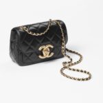 Introducing the CHANEL Mini Flap Bag in Shiny Lambskin – a chic and sophisticated take on a timeless classic. Adorned with a stunning quilted exterior and finished with the iconic CC turnlock, this exquisite bag will add a touch of luxury to any outfit. With a black quilted lambskin exterior, it also features a chain and leather interwoven sliding shoulder strap, making it an easy transition from day to night. The top flap closes with a CC turnlock and features two slip pockets for easy organization. With a front flap pocket adorned with a CC turnlock closure, this bag is both practical and stylish.
