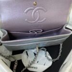 This small Classic Double Flap Bag is crafted in gradient grey lambskin with silver hardware, front flap with signature CC turnlock closure, half-moon back pocket, adjustable silver interwoven chain link and grey leather shoulder strap.