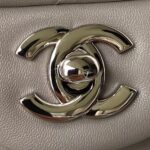 This small Classic Double Flap Bag is crafted in dark grey lambskin with silver hardware, front flap with signature CC turnlock closure, half-moon back pocket, adjustable interwoven silver chain and dark grey leather shoulder strap.