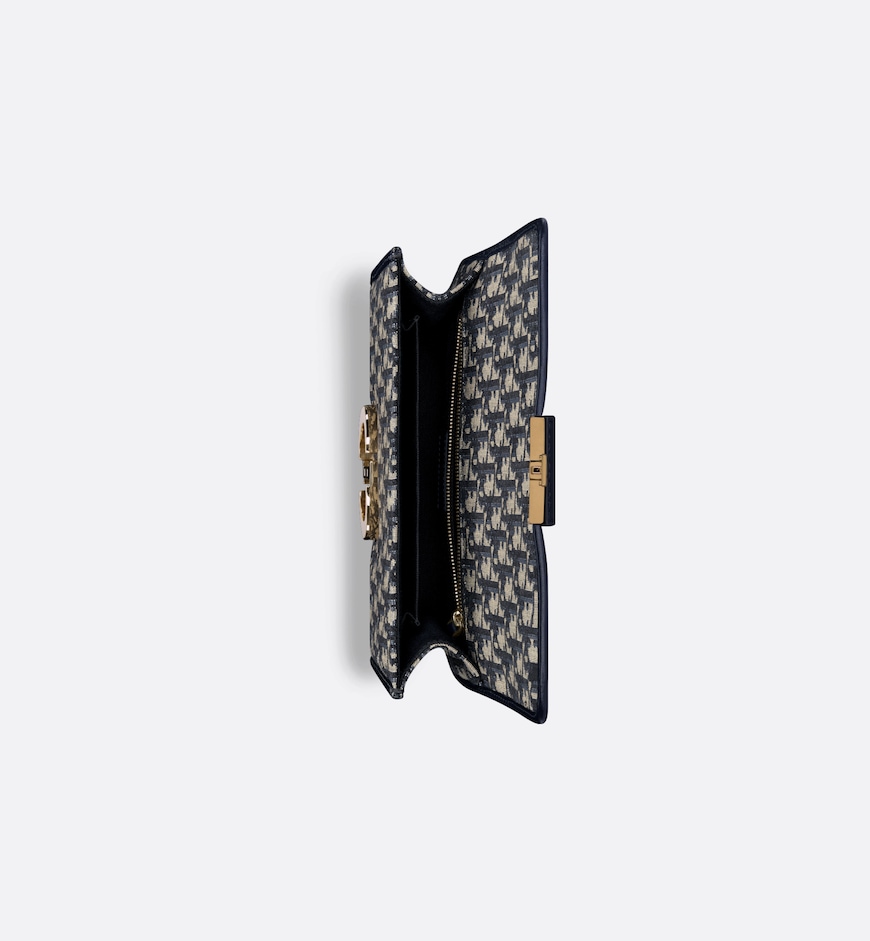 • The 30 Montaigne line is inspired by the emblematic address and offers essential pieces that embody the House’s iconic codes. The bag is crafted in blue Dior Oblique jacquard for an elegant and timeless look. The flap is embellished with an antique gold-finish metal CD clasp, inspired by the seal of a Christian Dior perfume bottle. Refined details such as an embossed 30 Montaigne signature on the back, define this unique design. Featuring an adjustable leather shoulder strap, the 30 Montaigne bag can be carried by hand, worn over the shoulder or crossbody.