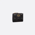 The Dior Caro Dahlia wallet displays the iconic Cannage topstitching in a contemporary variation. Crafted in black supple calfskin, it has a CD signature on the front. A chic and spacious companion, the wallet can be coordinated with other bags from the same line.
