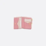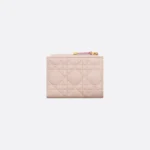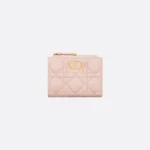 The Dior Caro Dahlia wallet offers a contemporary take on the iconic Cannage topstitching. Constructed in three-tone Cannage calfskin, it has a powder pink exterior and reveals a practical interior in melocoton pink and latte featuring multiple slots with elegant graphic lines. Accented by an antique gold-finish metal CD signature on the front, the chic and spacious companion can be coordinated with bags from the same line.