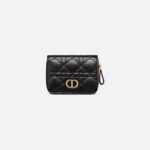 The Dior Caro Scarlet wallet features an elegant CD signature on its flap and hallmark Cannage topstitching. Crafted in black supple calfskin, the lightweight and practical daily essential can be combined with other pieces from the Dior Caro line and may be slipped into any bag.