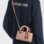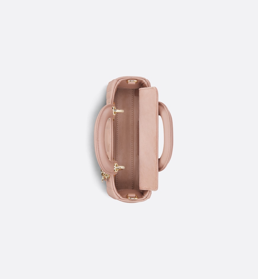 The Lady D-Joy micro bag captures the House’s vision of elegance and beauty by showcasing the iconic streamlined aesthetic of the Lady Dior line. Sleek and refined, the timeless creation is crafted in Rose des Vents lambskin with Cannage topstitching and enhanced by a pale gold-finish metal D.I.O.R. charm. Featuring one removable chain strap and another adjustable and removable leather strap, the Lady D-Joy bag can be carried by hand, worn over the shoulder or crossbody as an ideal day or evening companion.