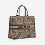 Introduced by Maria Grazia Chiuri, Creative Director of Christian Dior, the Dior Book Tote has become a staple of the Dior aesthetic. Designed to hold all the daily essentials, the style is fully embroidered with the season’s signature Toile de Jouy Soleil motif in beige and black, offering a new take on the iconic House motif with suns and crescent moons layered into a floral design representing the four seasons. Exemplifying House savoir-faire, the large tote is adorned with the Christian Dior Paris signature on the front, and may be carried by hand or worn over the shoulder.