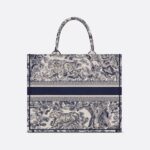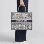 Introduced by Maria Grazia Chiuri, Creative Director of Christian Dior, the Dior Book Tote has become a staple of the Dior aesthetic. Designed to hold all the daily essentials, the style is fully embroidered with the ecru and blue Toile de Jouy motif. Adorned with the Christian Dior Paris signature on the front, the large tote exemplifies the House’s savoir-faire and may be carried by hand or worn over the shoulder.