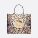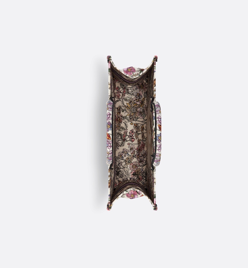 Introduced by Maria Grazia Chiuri, Creative Director of Christian Dior, the Dior Book Tote has become a staple of the Dior aesthetic. Designed to hold all the daily essentials, the ecru multicolor style is fully embroidered with the Dior 4 Saisons Été Soleil motif by Pietro Ruffo, celebrating the season’s signature sun theme with a bucolic summery design punctuated by the words, Le soleil brillant, l’été célèbre sa joie sans fin. Adorned with the Christian Dior Paris signature on the front, the large tote exemplifies the House’s signature savoir-faire and may be carried by hand or worn over the shoulder.