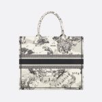 • Introduced by Maria Grazia Chiuri, Creative Director of Christian Dior, the Dior Book Tote has become a staple of the Dior aesthetic. Designed to hold all the daily essentials, the latte and black style is fully embroidered with the Toile de Jouy Zodiac motif, a variation of the iconic pattern that incorporates Mr. Dior’s passion for astrology. Adorned with the Christian Dior Paris signature on the front, the large tote exemplifies the House’s signature savoir-faire and may be carried by hand or worn over the shoulder.
