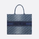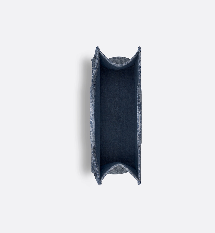 • Introduced by Maria Grazia Chiuri, Creative Director of Christian Dior, the Dior Book Tote has become a staple of the Dior aesthetic. Designed to hold all the daily essentials, it is constructed in blue Denim Dior Oblique jacquard, offering a new take on the iconic House motif with the modern appeal of an irregular stonewashed effect. Adorned with a contrasting Christian Dior Paris signature on the front, the large tote exemplifies the House’s savoir-faire and may be carried by hand.