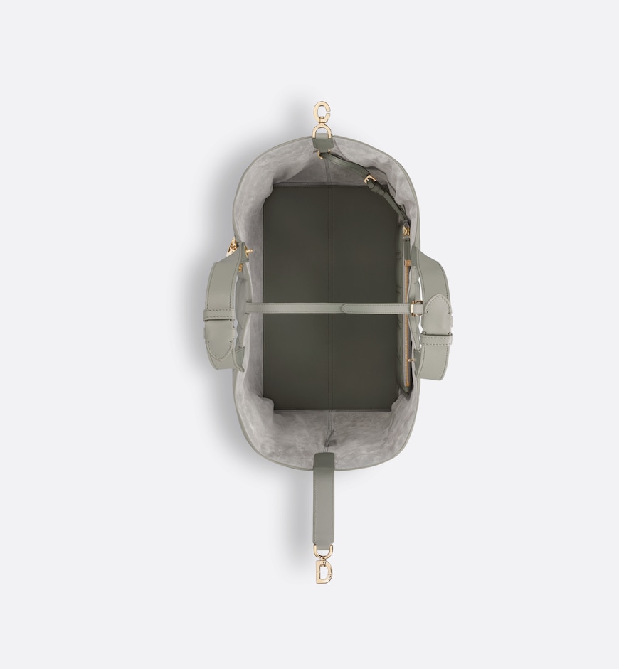 The Dior Toujours bag is distinguished by a casual and practical design. Crafted in stone gray calfskin with Macrocannage topstitching, it showcases a spacious interior compartment with a matching pouch to organize the essentials. Its thin leather strap closure keeps items secure while the D of the CD Lock clasp twists to adjust the sides and enhance the bag’s silhouette. The leather handles can be adjusted using the small notches in order to be able to carry the large bag by hand or wear it over the shoulder.