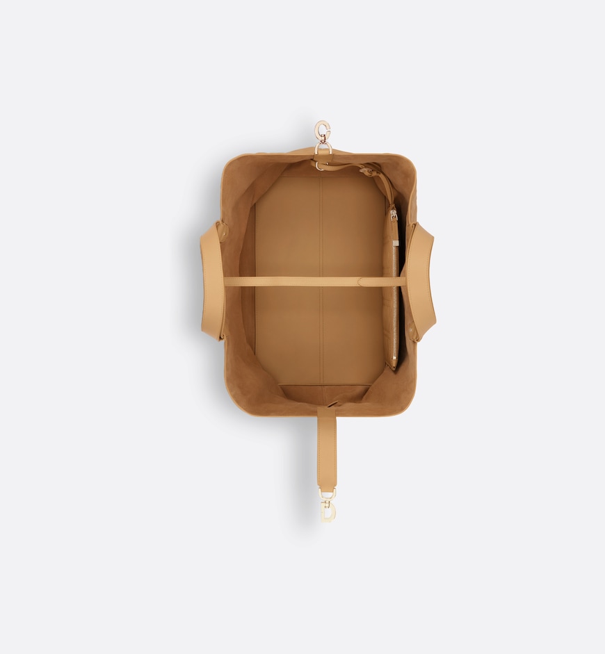 Unveiled at the Spring-Summer 2023 Fashion Show, the Dior Toujours bag is distinguished by a casual and practical design. Crafted in medium tan calfskin with Macrocannage topstitching, it showcases a spacious interior compartment with a matching pouch to organize essentials. Its thin leather strap closure keeps items secure while the D of the CD Lock clasp twists to adjust the sides and enhance the bag’s silhouette. The leather handles can be adjusted using the small notches in order to be able to carry the large bag by hand or wear it over the shoulder.