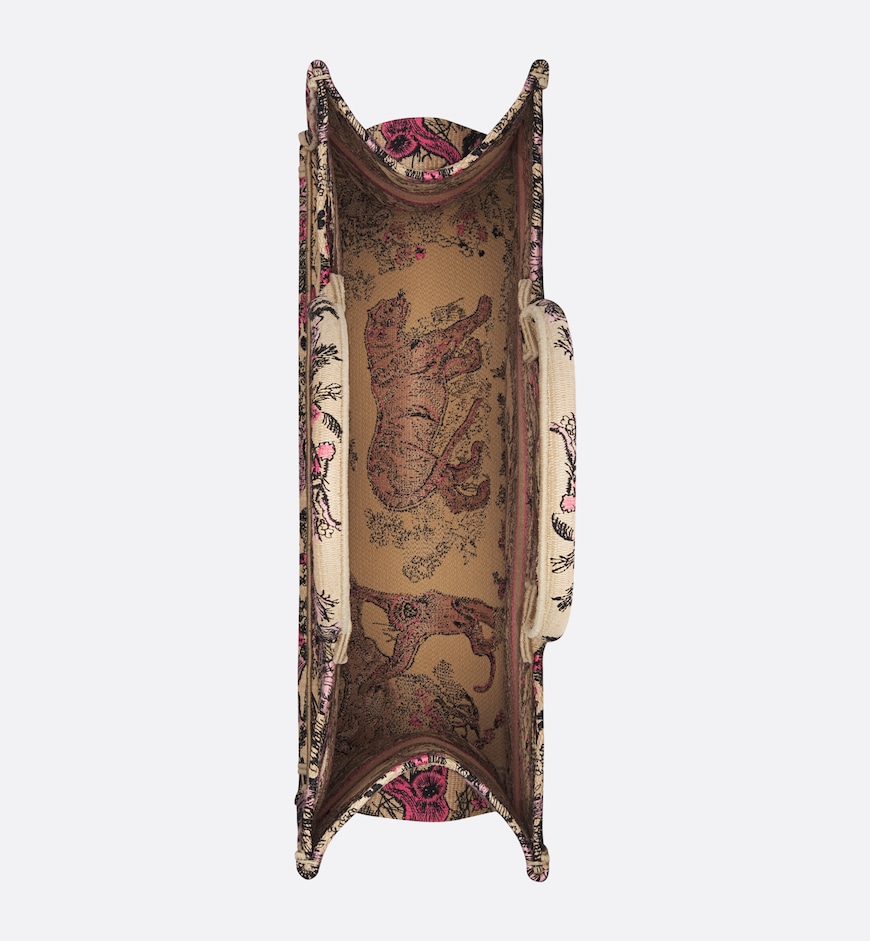 Introduced by Maria Grazia Chiuri, Creative Director of Christian Dior, the Dior Book Tote has become a staple of the Dior aesthetic and is part of the Dioriviera capsule. Designed to hold all the daily essentials, it is crafted in raffia embroidered with the Toile de Jouy Sauvage motif in candy pink. Enhanced by a contrasting Christian Dior Paris signature on the front, the large tote exemplifies the House’s savoir-faire and may be carried by hand.