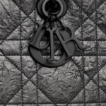 New for the season and appearing in the Spring-Summer 2024 Fashion Show, the Lady D-Sire bag draws inspiration from the iconic elegance of the Lady Dior design. Reimagined with a casual style for an urban look, the black crinkled calfskin is accented by Macrocannage topstitching, while tonal ultra-matte metal D.I.O.R. charms lend a modern touch. Featuring a thin, removable leather shoulder strap, the unique large bag can be carried by hand or worn over the shoulder.