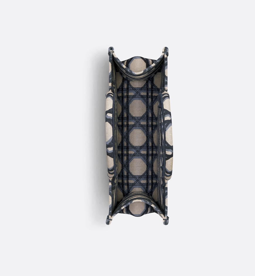 • Introduced by Maria Grazia Chiuri, Creative Director of Christian Dior, the Dior Book Tote has become a staple of the Dior aesthetic. Designed to hold all the daily essentials, the style is fully embroidered with the beige and blue Macrocannage motif and is adorned with the Christian Dior Paris signature on the front. Exemplifying the House’s signature savoir-faire, the medium tote may be carried by hand or worn over the shoulder.