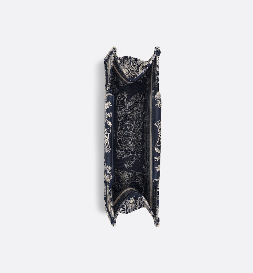 • Introduced by Maria Grazia Chiuri, Creative Director of Christian Dior, the Dior Book Tote has become a staple of the Dior aesthetic. Designed to hold all the daily essentials, the style is fully embroidered with the blue and ecru Toile de Jouy Reverse motif, a variation of the House’s hallmark pattern with a play on reversed colors. Adorned with the Christian Dior Paris signature on the front, the medium tote exemplifies the House’s signature savoir-faire and may be carried by hand or worn over the shoulder.