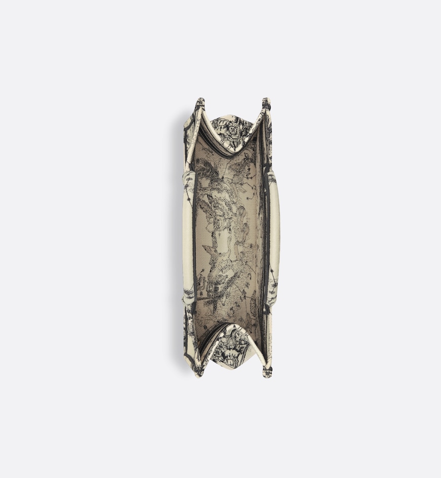 Introduced by Maria Grazia Chiuri, Creative Director of Christian Dior, the Dior Book Tote has become a staple of the Dior aesthetic. Designed to hold all the daily essentials, the style is fully embroidered with the latte and black Dior Zodiac motif created by the artist Pietro Ruffo. Adorned with the Christian Dior Paris signature on the front, the medium tote exemplifies the House’s signature savoir-faire and may be carried by hand or worn over the shoulder.