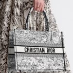 • Introduced by Maria Grazia Chiuri, Creative Director of Christian Dior, the Dior Book Tote has become a staple of the Dior aesthetic. Designed to hold all the daily essentials, the style is fully embroidered with the collection’s signature Paris Allover motif in white and black, honoring the Parisian landscape and the city’s monuments in a graphic spirit. Adorned with the Christian Dior Paris signature on the front, the medium tote exemplifies the House’s savoir-faire and may be carried by hand or worn over the shoulder.