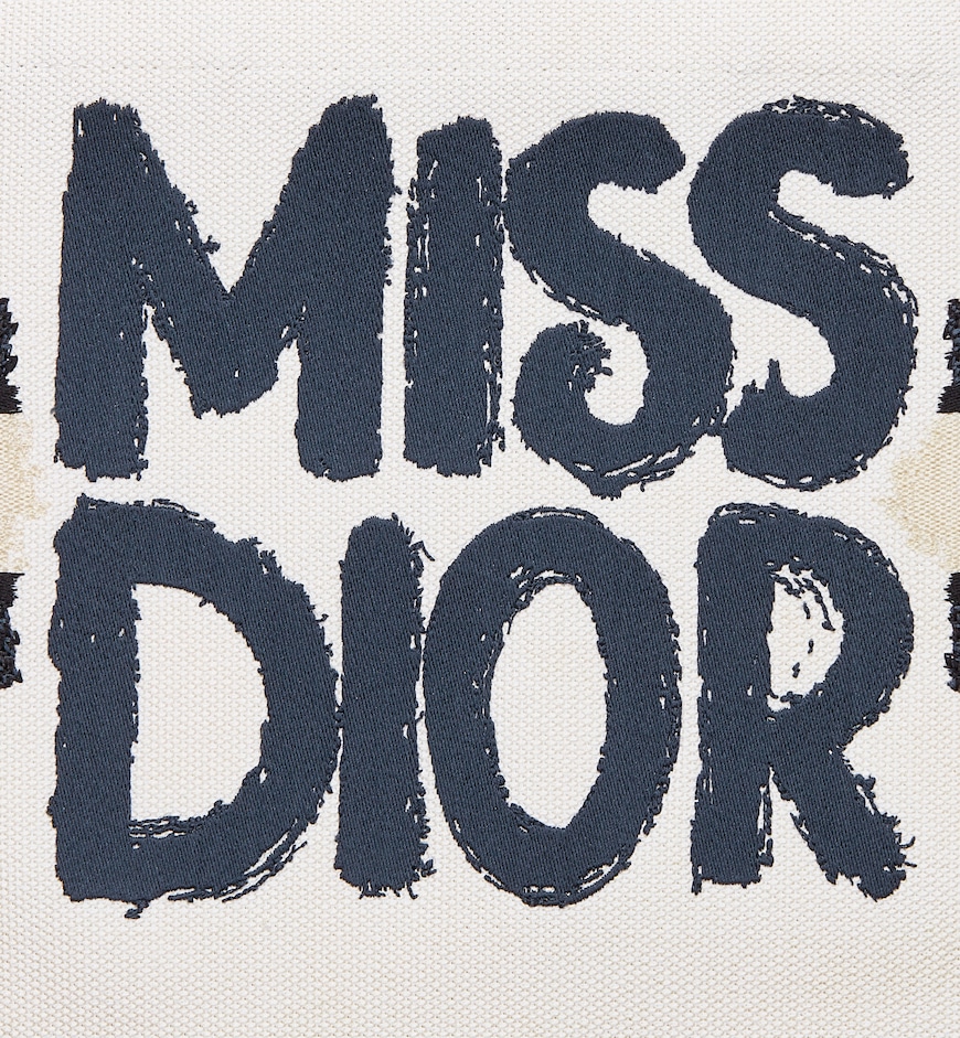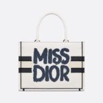 • Introduced by Maria Grazia Chiuri, Creative Director of Christian Dior, the Dior Book Tote has become a staple of the Dior aesthetic. Designed to hold all the daily essentials, the fully embroidered white style showcases the blue Miss Dior Graffiti motif, a nod to the 1967 debut ready-to-wear collection and a manifesto to Maria Grazia Chiuri’s signature celebration of feminism. The medium tote exemplifies Dior’s savoir-faire and may be carried by hand or worn over the shoulder.