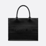• Introduced by Maria Grazia Chiuri, Creative Director of Christian Dior, the Dior Book Tote has become a staple of the Dior aesthetic. Designed to hold all the daily essentials, the black calfskin style is further enhanced by the Christian Dior Paris signature on the front. The medium tote exemplifies the House’s signature savoir-faire and may be carried by hand or worn over the shoulder.