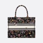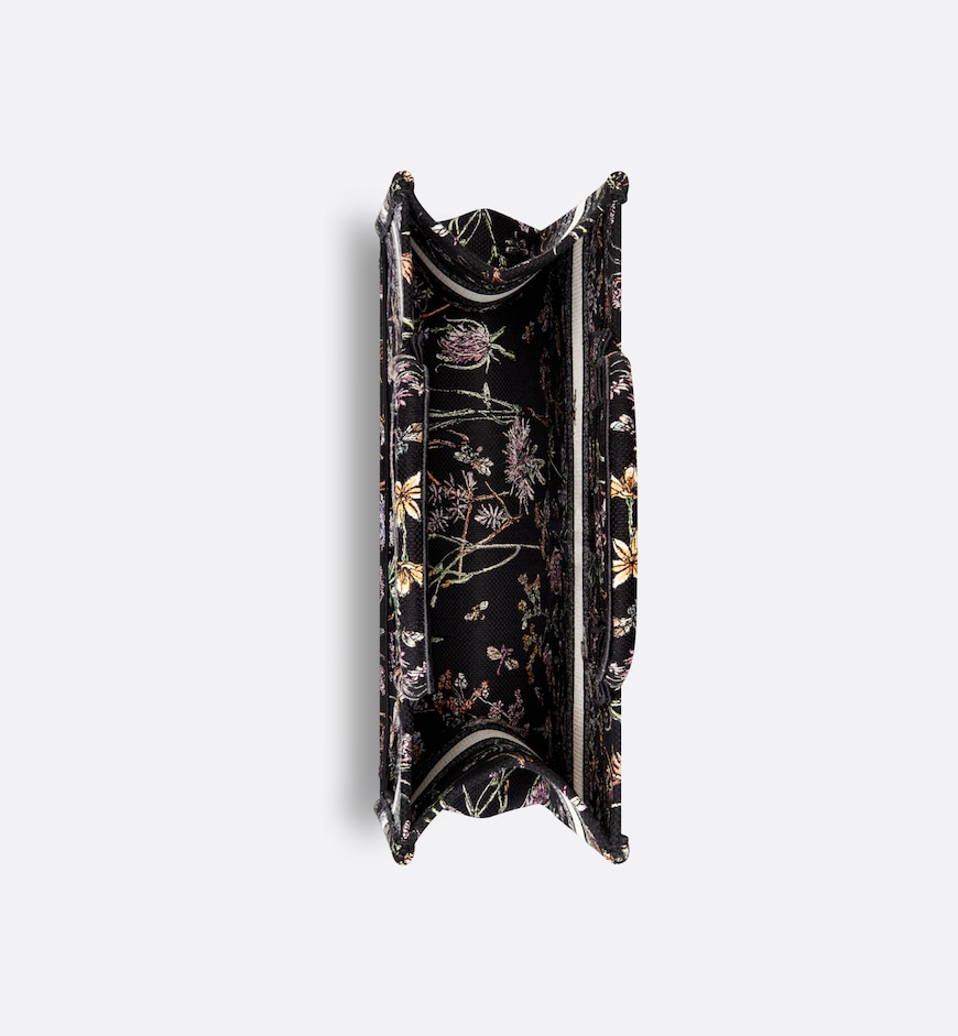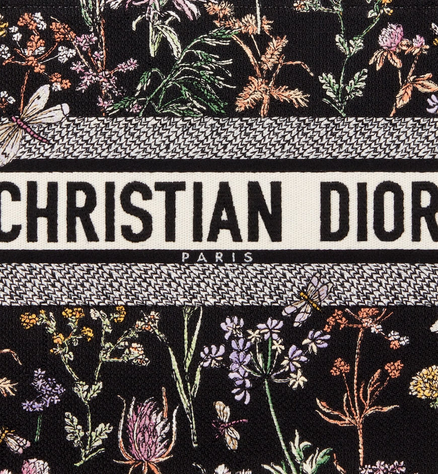Introduced by Maria Grazia Chiuri, Creative Director of Christian Dior, the Dior Book Tote has become a staple of the Dior aesthetic. Designed to hold all the daily essentials, the style is fully embroidered with the black multicolor Dior Herbarium motif, a vibrant homage to Mr. Dior’s passion for botanicals. Inspired by House archives, it showcases a collection of wild plants and flowers accented by dragonflies and bees. Adorned with the Christian Dior Paris signature on the front, the medium tote exemplifies the House’s savoir-faire and may be carried by hand or worn over the shoulder.
