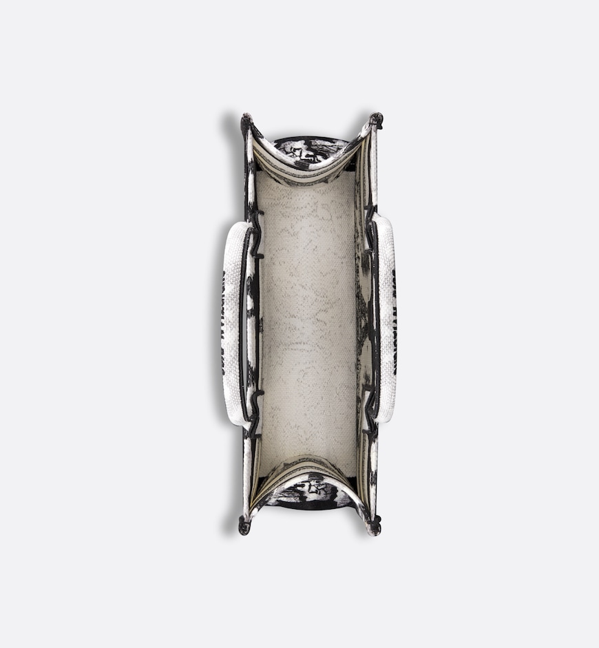 Introduced by Maria Grazia Chiuri, Creative Director of Christian Dior, the Dior Book Tote has become a staple of the Dior aesthetic. Designed to hold all the daily essentials, the style is fully embroidered with the white and black Paris motif, a pillar of the collection that honors the Eiffel Tower in a graphic spirit. Adorned with the Christian Dior Paris signature on the front, the medium tote exemplifies the House’s savoir-faire and may be carried by hand or worn over the shoulder.